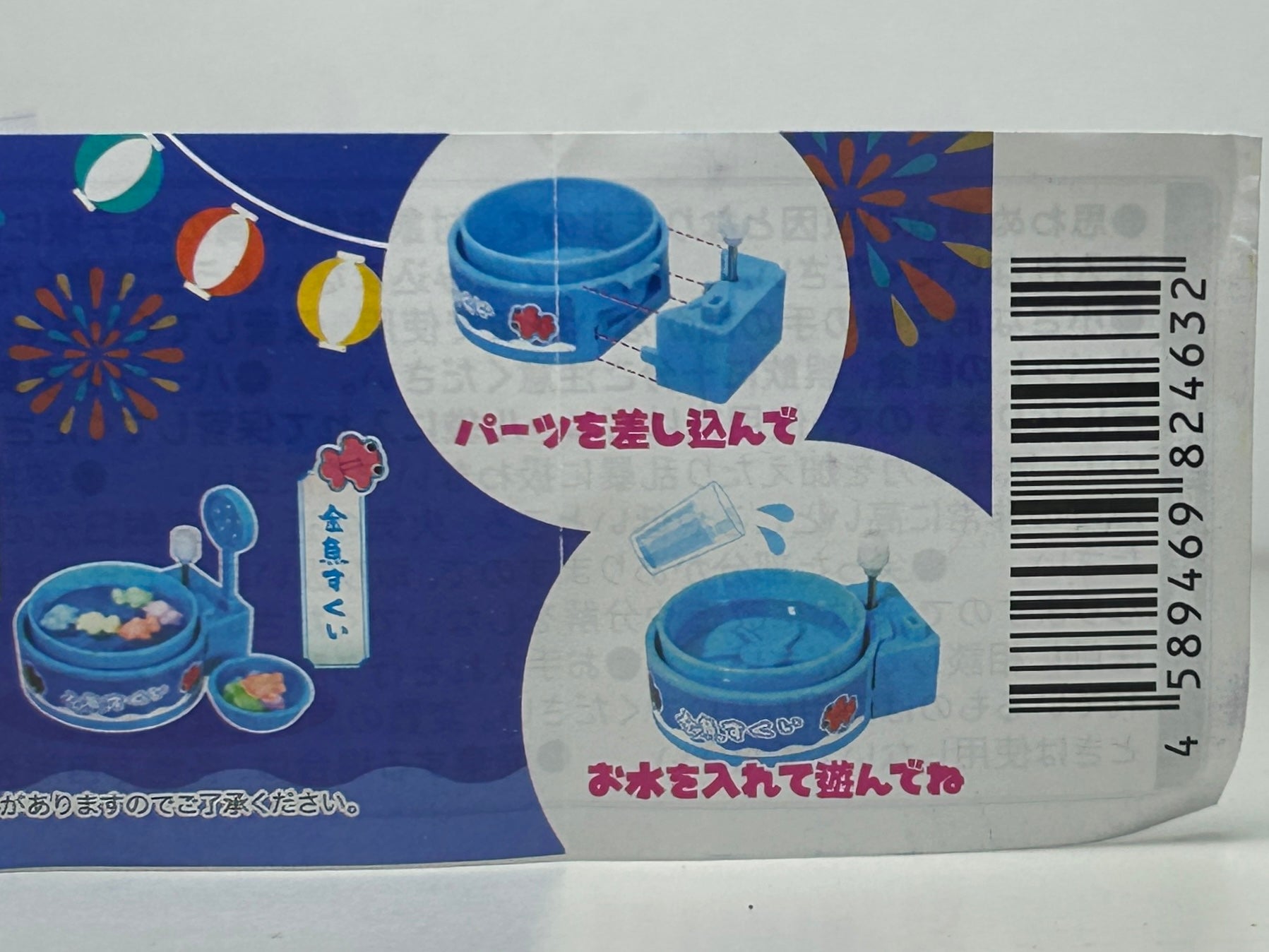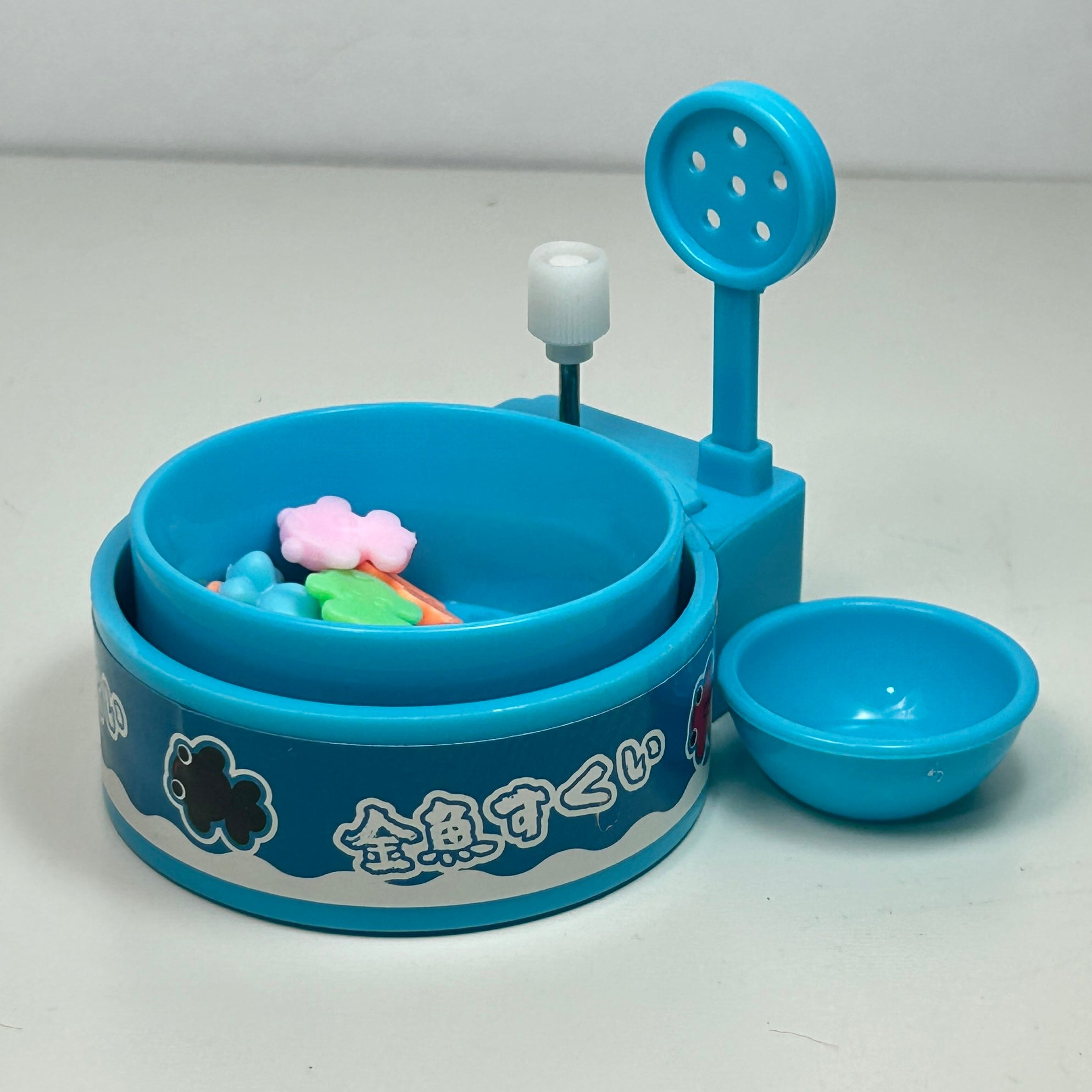 Capsule toy where you put water and mini figures in the rotating basin and play the “festival scooping game”.