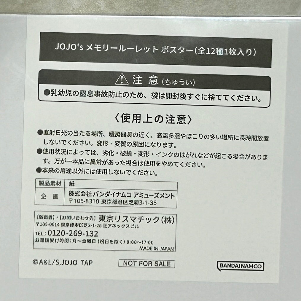 Product Description: This is an A3 poster, the C prize in the "JoJo's Bizarre Adventure: JoJo's World Quizzes" mini-game, JoJo's Memory Roulette.
